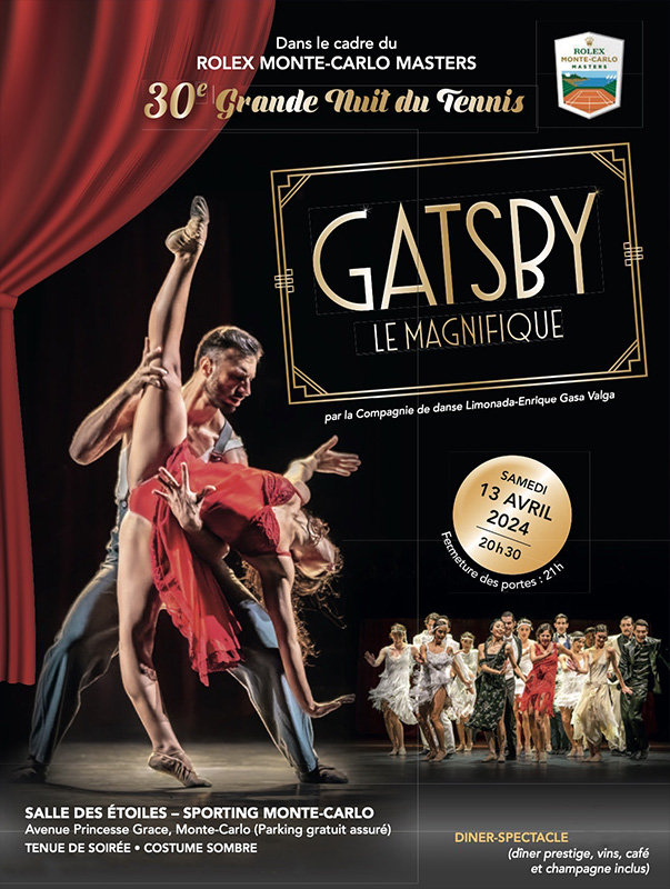 This evening brings together, in the prestigious Salle des Étoiles, members of the Princely Family, players, sponsors, tournament partners, the international press, and many distinguished guests for a dinner show. The performances, exclusively programmed for this prestigious event, are of exceptional artistic quality. More than a thousand artists have already taken part, including the Moscow Circus on Ice, Kaoma, Tap Dogs, Shaolin Kung Fu, Arturo Brachetti, Luz Casal, the National Ballet of Ukraine, the New National Circus of China, and the Todes Ballet from Russia...